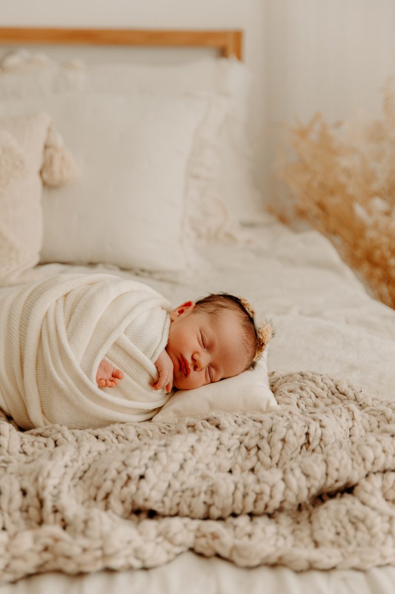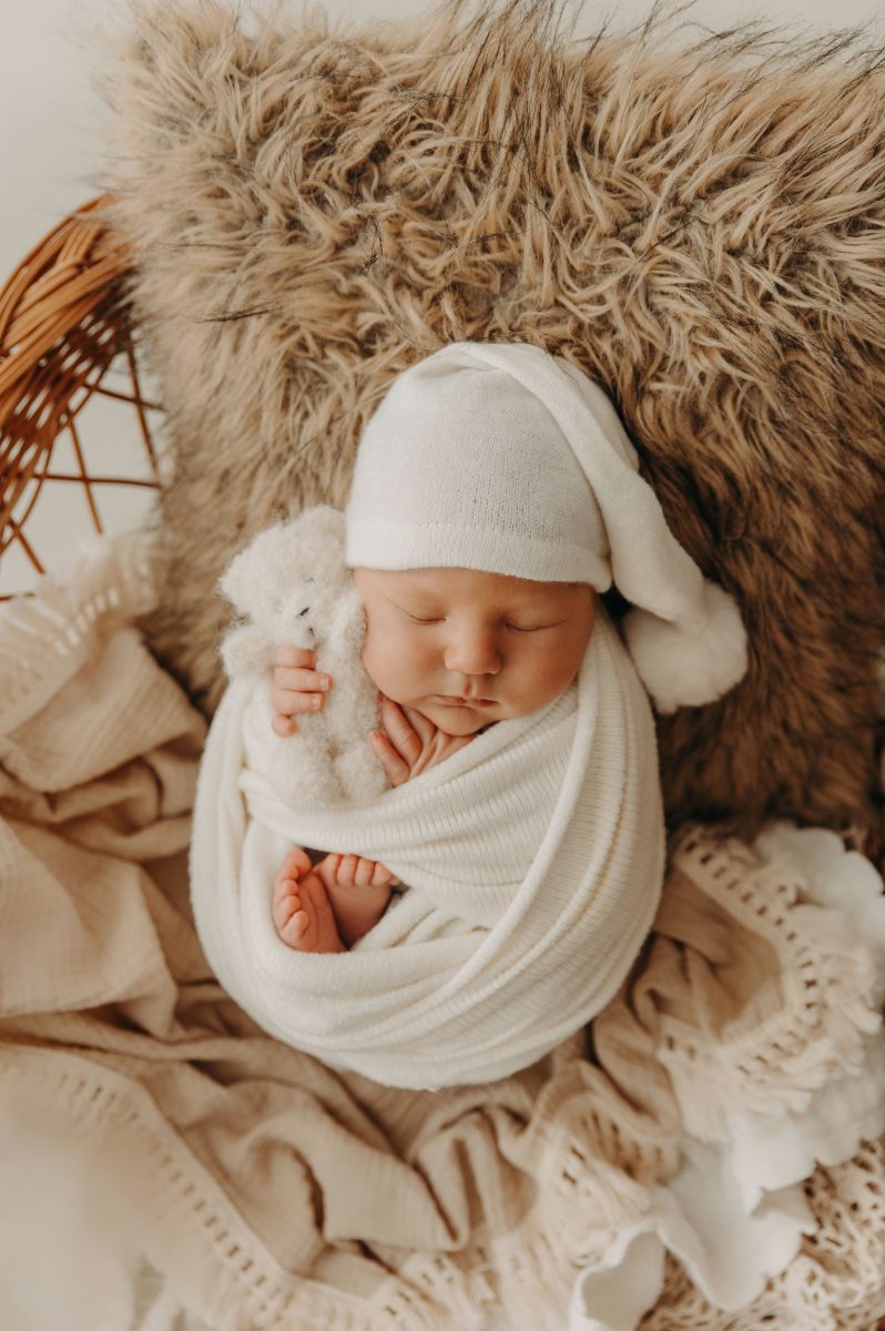 Sesje noworodkowe odbywają się w moim studio i wykonuję je wyłącznie do 14. doby życia maluszka. To wyjątkowy czas, gdy dzieci większość dnia przesypiają, są jeszcze bardzo plastyczne, a ich pozycjonowanie jest w pełni bezpieczne i komfortowe. Później może pojawić się np. kolka lub większa ciekawość świata – co często utrudnia wykonanie spokojnej sesji.